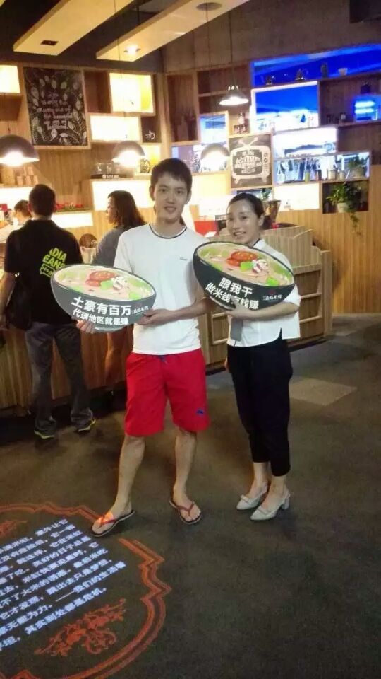 2015年8月14日,感謝江蘇省宿遷市劉先生和秦先生、浙江省湖州市朱女士、河北省廊坊市毛女士和李先生、甘肅省蘭州市蘆小姐、福建省福州市陳先生、貴州省貴陽(yáng)市張小姐和單先生、河南省洛陽(yáng)市張先生、河南省信陽(yáng)市鐘小姐、陜西省寶雞市呂先生、杭州市拱墅區(qū)王先生、崔世英超先生、杭州市舟山東路侯先生、天津市王先生夫婦對(duì)公司的信任,在考察了十秒到云南過橋米線總部后,簽約加盟十秒到云南過橋米線加盟店。十秒到云南過橋米線店開一家,火一家。相信這會(huì)給予眾多十秒到的創(chuàng)業(yè)者們更大的信心與動(dòng)力,一起在十秒到的熱潮中生意越做越火爆。