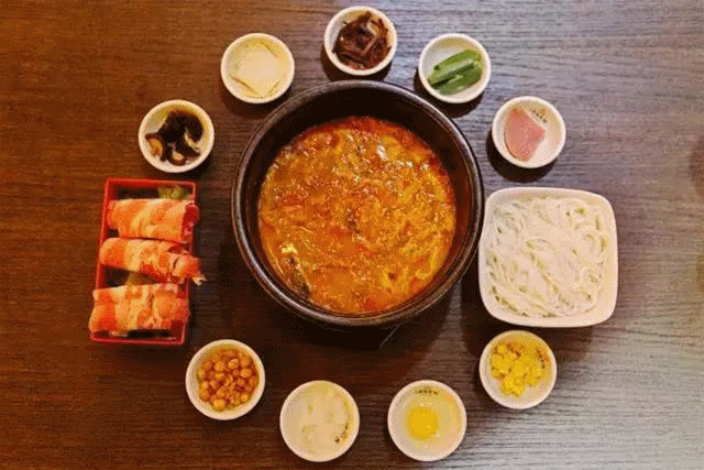 配菜按照“先生后熟”倒進滾燙的濃湯里