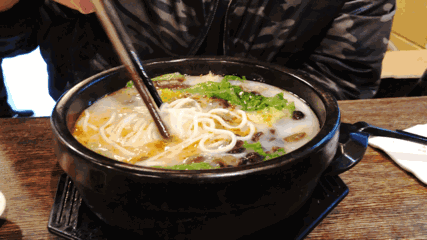 十秒到過橋米線講究「鮮、爽、燙」,銷魂的雞湯,品種繁多復雜的配菜,嫩滑彈牙的米線,用筷子挑起一溜地吸進嘴里,一口回魂。無論在哪里,在街邊來一碗熱氣騰騰的米線,鮮、香、爽同時在口中蔓延,配上各色配菜,簡直勾人魂魄!根根勁道爽滑,不含任何明膠等增強口感的物質。每嚼一口,米線上包裹的湯汁在嘴里肆意噴射,越吃越想吃。每種味道的比例都恰到好處,先是若游絲般的一縷大米清香鉆進鼻腔,緊接著香、辣、鮮、麻都跟著洶涌而至。每嚼一口,米線上包裹的湯汁在嘴里肆意噴射,越吃越想吃。
