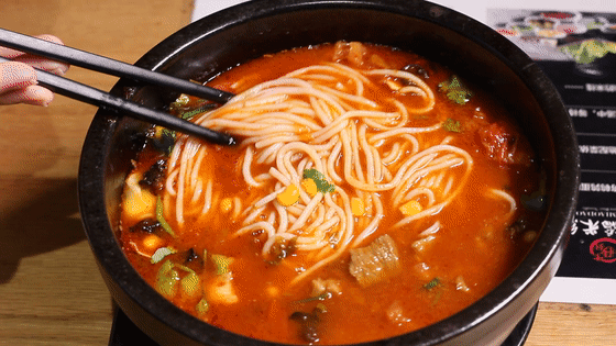 一碗湯,一碗米線,等待十秒讓配菜在湯汁里盡情翻滾后,就盡情享用這一個人的盛宴吧!