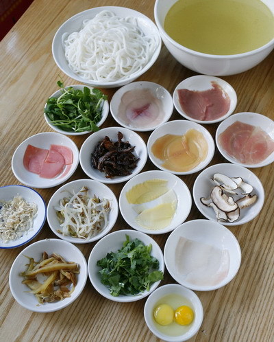 南北方的過橋米線湯底大體相同,只是在配菜上適當添加了符合當地口味和飲食習慣的菜品。營養價值不言而喻。
